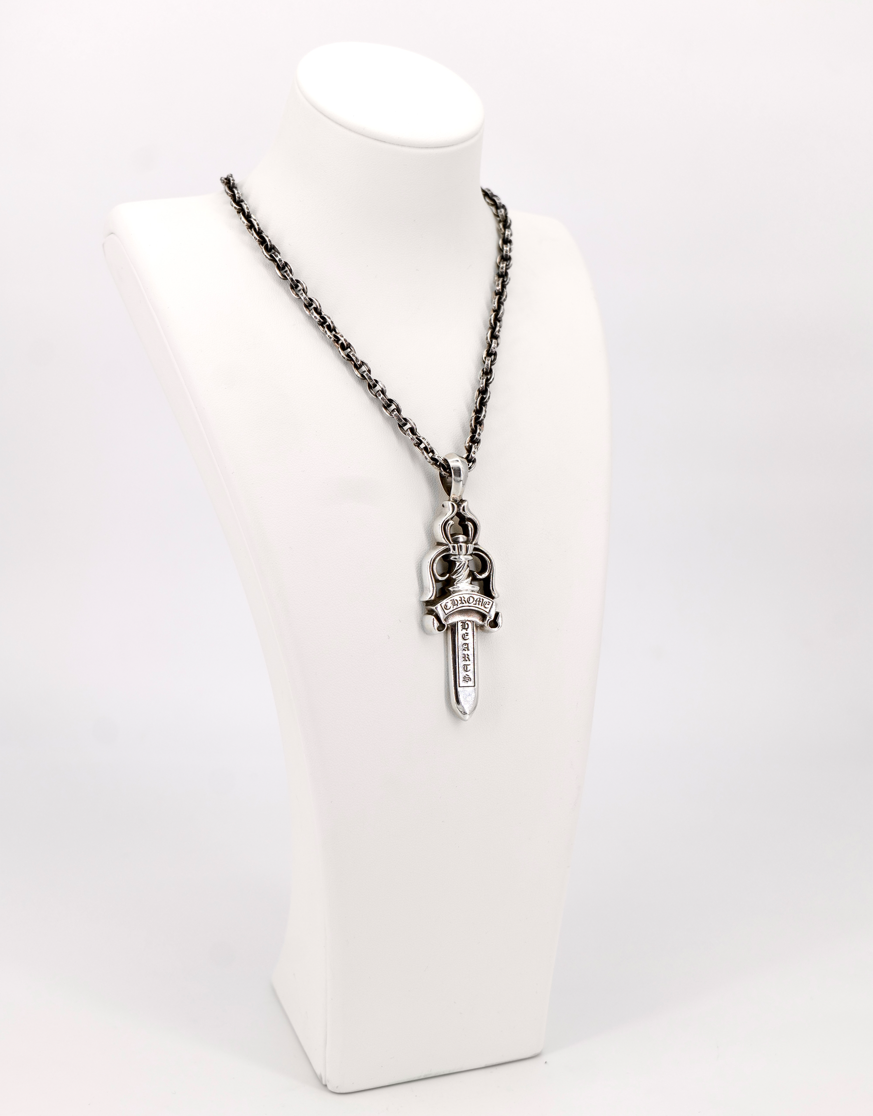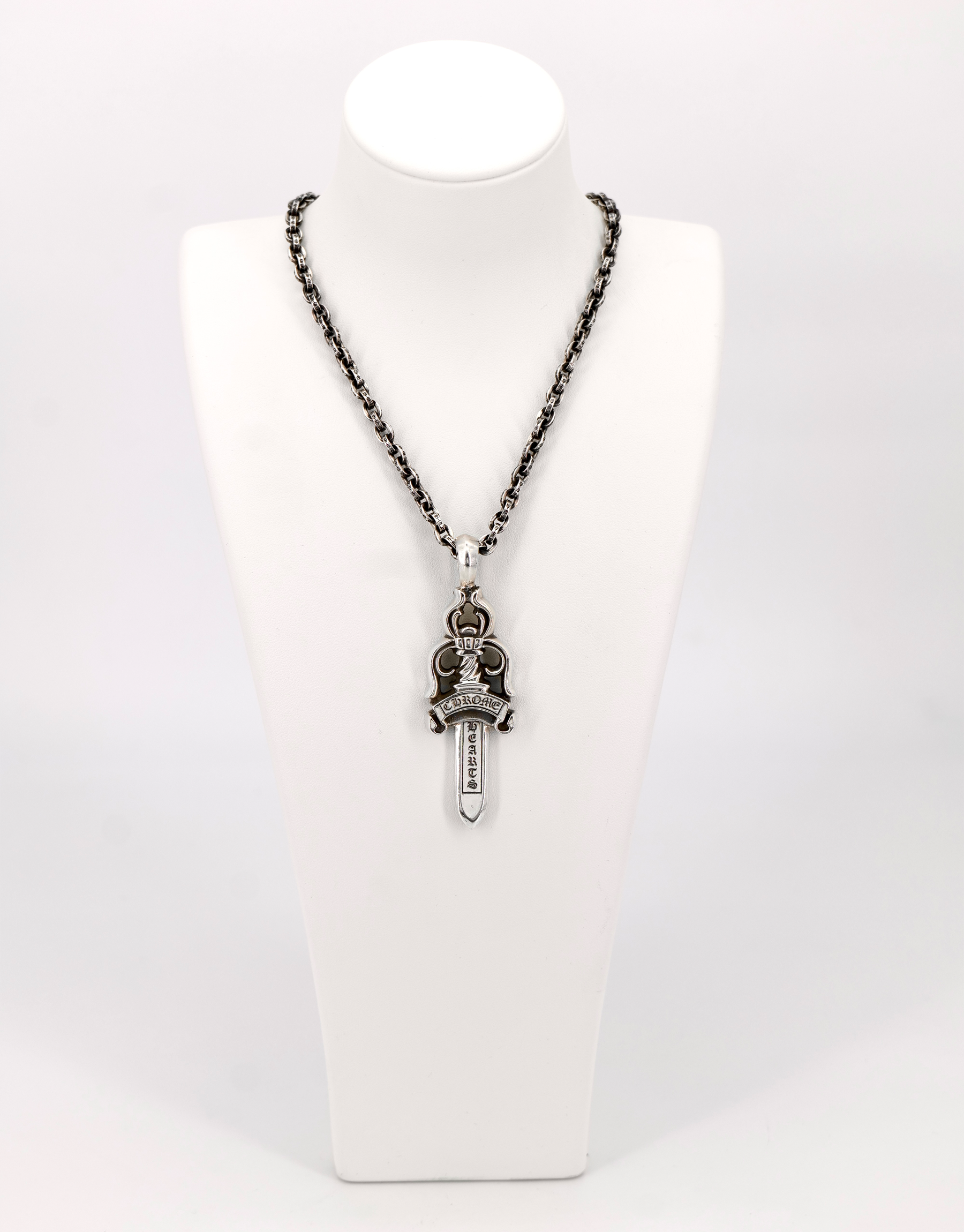 CHROME HEARTS LARGE DAGGER ON PAPER CHAIN NECKLACE 24INCH
