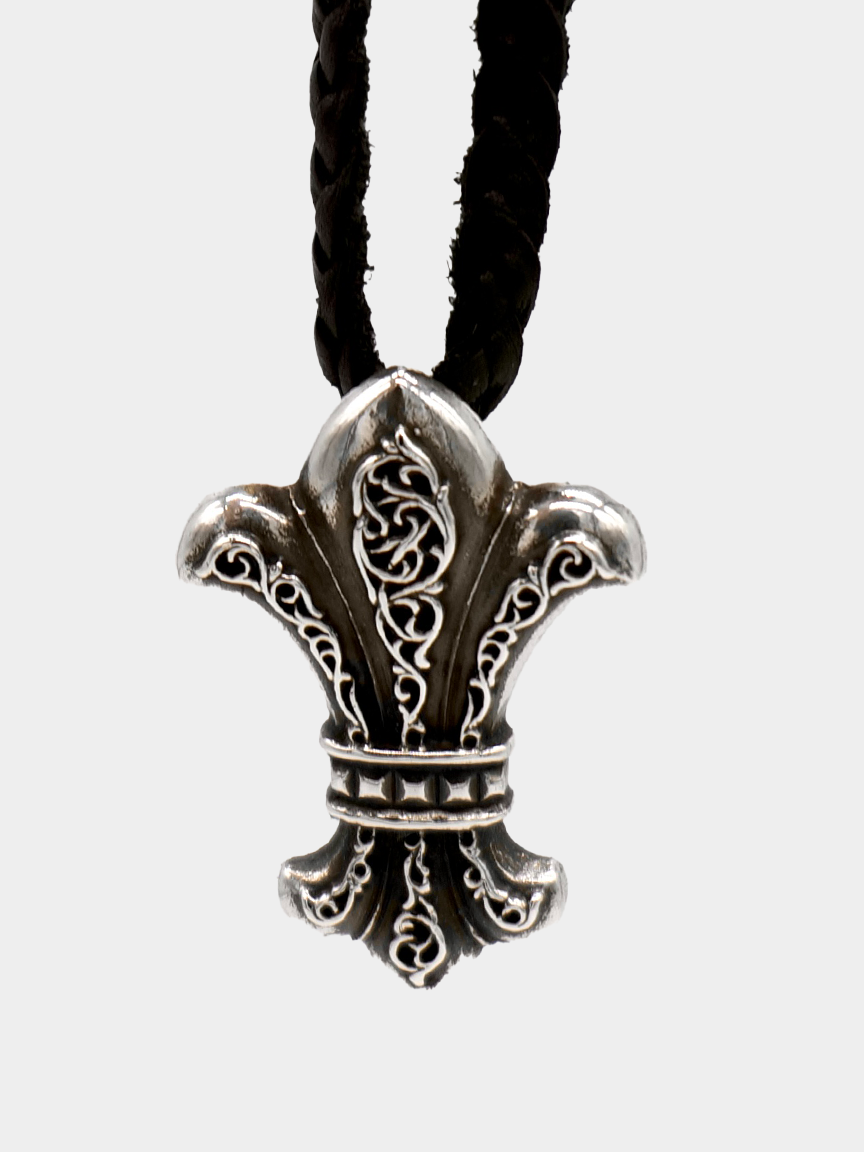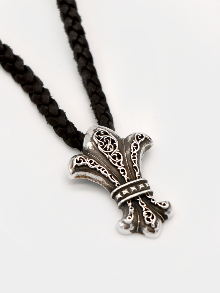 CHROME HEARTS VINTAGE BS FLEUR ON LEATHER BRAID.